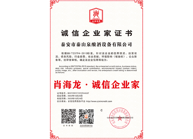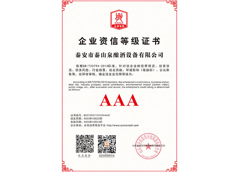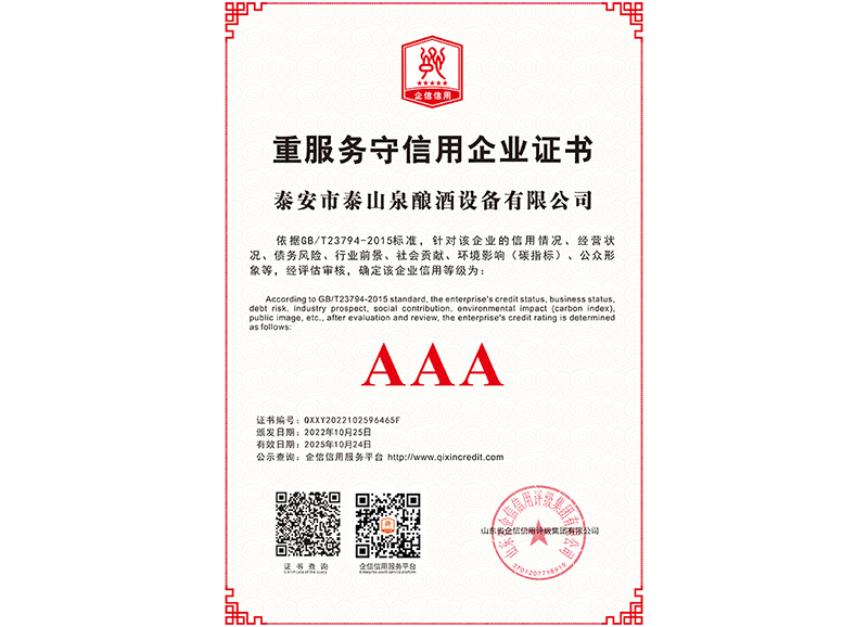 泰安市泰山泉釀酒設(shè)備有限公司,是一家專(zhuān)業(yè)從事釀酒設(shè)備機(jī)械化研發(fā)并集技術(shù)咨詢(xún),工程設(shè)計(jì),制造安裝,人員培訓(xùn)及售后服務(wù)為一體的綜合性企業(yè),本公司主要產(chǎn)品為:大曲清香、小曲清香、大曲醬香、大曲濃香等香型白酒機(jī)械化設(shè)備。  本公司與中國(guó)科學(xué)院自動(dòng)化研究所簽訂技術(shù)服務(wù)合同,引進(jìn)先進(jìn)技術(shù),研究生產(chǎn)全自動(dòng)化機(jī)械釀酒設(shè)備,由中國(guó)科學(xué)自動(dòng)化研究所的技術(shù)支持,打造最先進(jìn)的生產(chǎn)釀酒設(shè)備,公司有信心打造全國(guó)最先進(jìn)白酒...